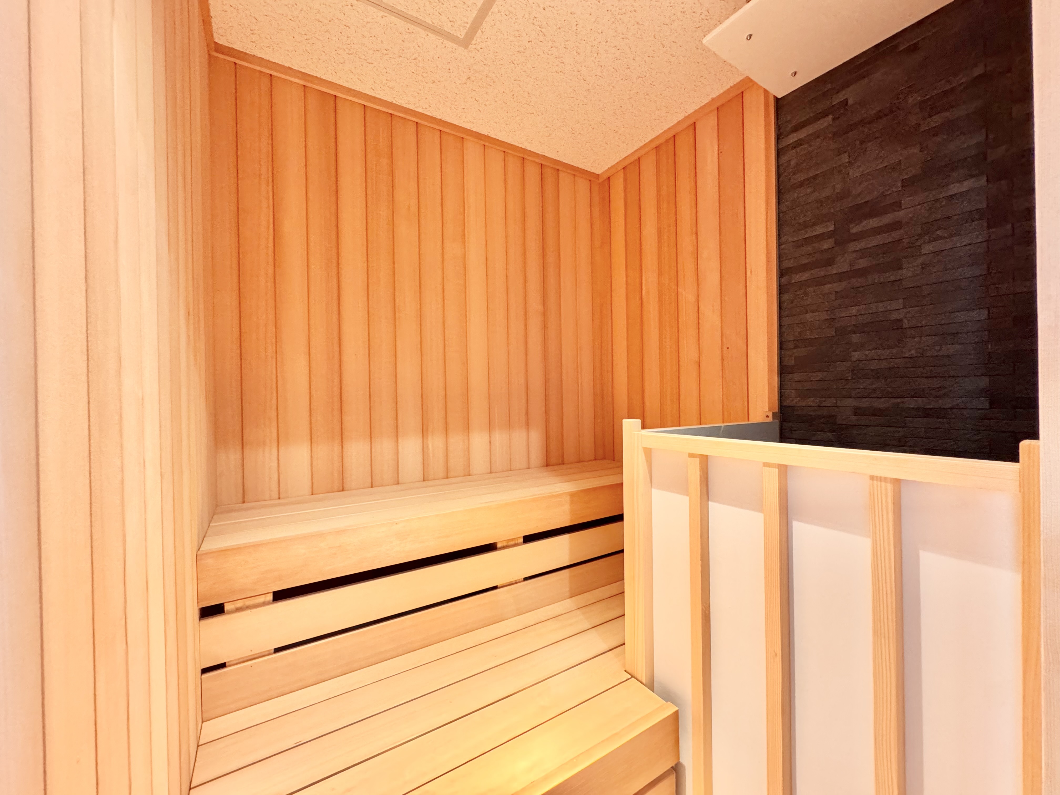 このこだわりのお風呂は、冬でもあたたかな浴室内床暖房にサウナ・水風呂・寝湯がございます。